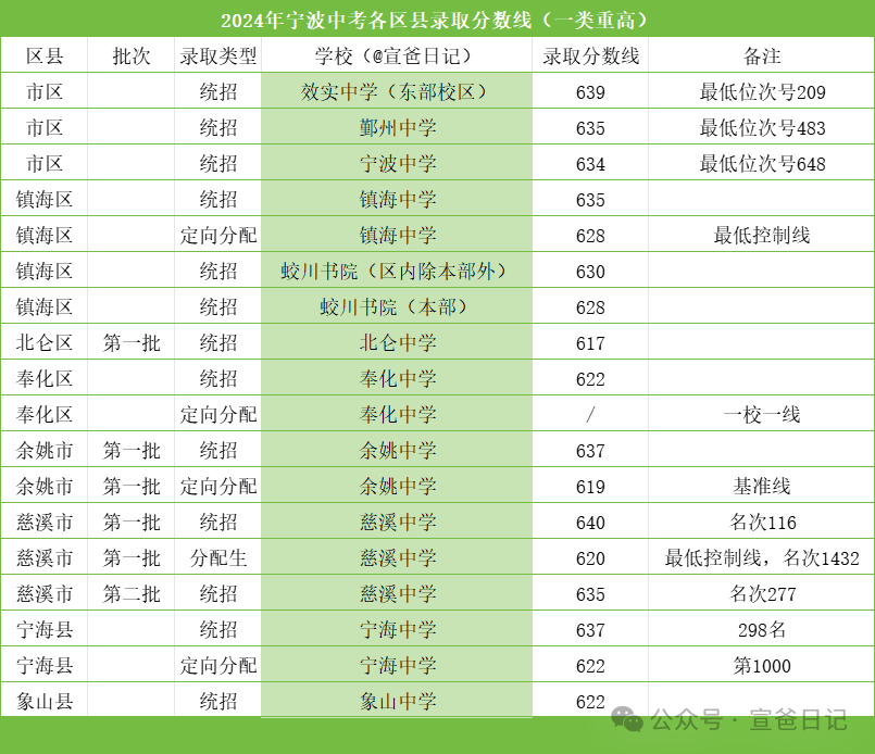 下图是今年宁波市各区县普高的录取分数线(完整版)