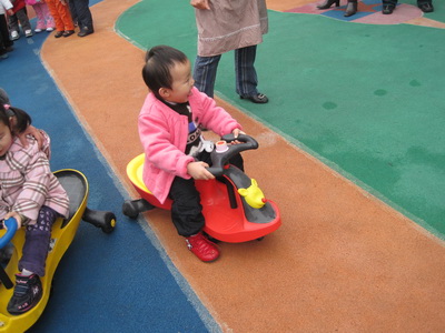 今天,老师组织我们玩了新玩具—;—;扭扭车,