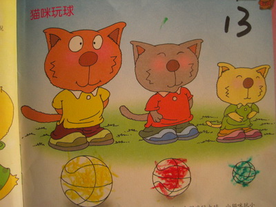 我们给小猫找到了皮球,你们瞧!我们还是挺不错的哦!不过还需努力。