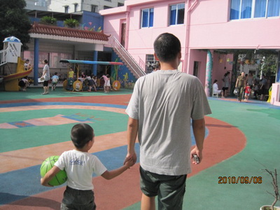 (王硕小朋友看到别的小朋友带走了,自己还主动跟上去了。看来糖衣炮弹还是势不可挡啊!)