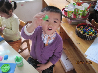 现在小朋友们能用橡皮泥玩出很多花样来,无论是做汤圆还是米馒头都是有模有样的,甚至有些小朋友还做了生日蛋糕,他们的创作果真不可小觑啊!