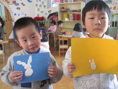 小朋友用揉,搓,压的方法在泥工板上做了小兔子。赶快来欣赏一下吧。