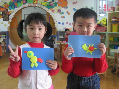 小朋友喜欢玩橡皮泥,早上来园早的孩子做了泥工,我把他们的作品记录下来。这是个别幼儿做的小黄鸡。