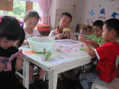 下午手工课,发现我们小朋友用剪刀的技能又提高了,轮廓线也剪得整齐多了,孩子们的认真劲儿,真为他们高兴。孩子们做好的五颜六色的海螺,我们串成长长的一串,挂在了玻璃窗前,为教室里增添了一道亮丽的风景线。