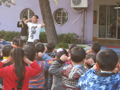 昨天幼儿园来了一位新朋友,那就是我们的芒果哥哥哦!我们一起做游戏,玩得很开心呢!\(^o^)/~冬天来了,大家一起做运动吧!