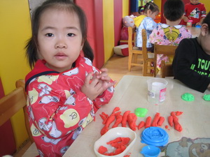今天老师让我们玩橡皮泥,我们有的
