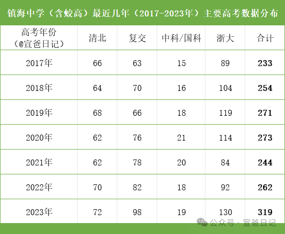 应该说,被镇中(含蛟高)录取的,10个人里面会有3个清北复交+浙大等打底。