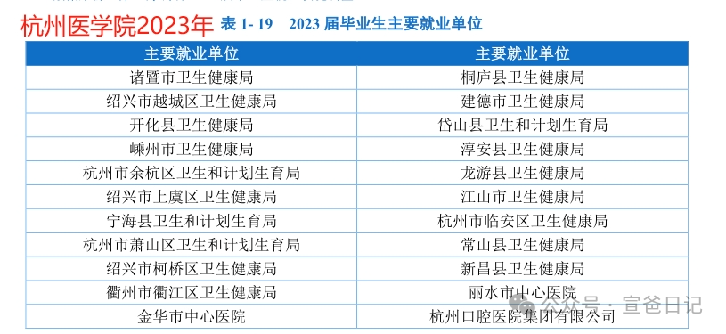 2023年毕业生主要的就业单位包括省内各区县卫健局和医疗机构;